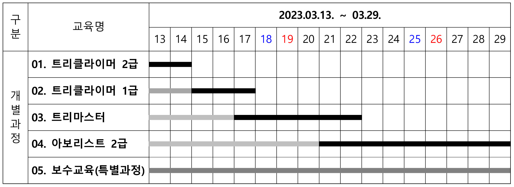 - Á¢¼ö±â°£ : 2023³â 2¿ù 20ÀÏ ~ 2023³â 3¿ù 8ÀÏ (°¢ ±³À° ½ÃÀÛÀÏ 5ÀÏ Àü±îÁö)