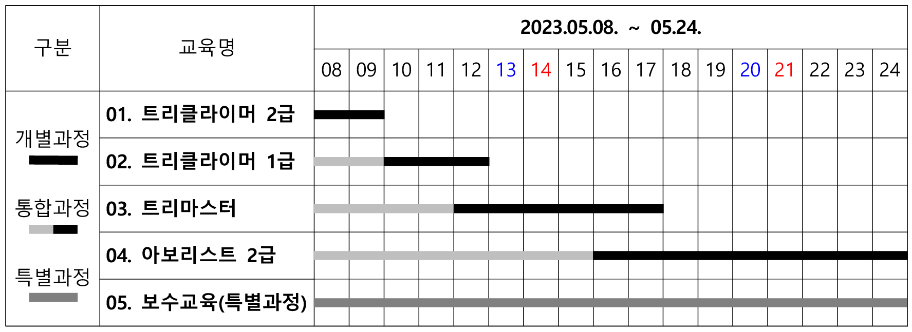 - ±³À°±â°£ : 2023³â 5¿ù 10ÀÏ (¼ö¿äÀÏ) ~ 5¿ù 12ÀÏ (±Ý¿äÀÏ) - 2¹Ú 3ÀÏ