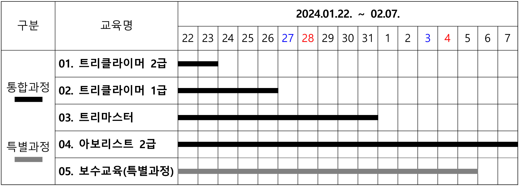 - ±³À°±â°£ : 2024³â 1¿ù 22ÀÏ (¿ù¿äÀÏ) ~ 2¿ù 7ÀÏ (¼ö¿äÀÏ) - 17ÀÏ
